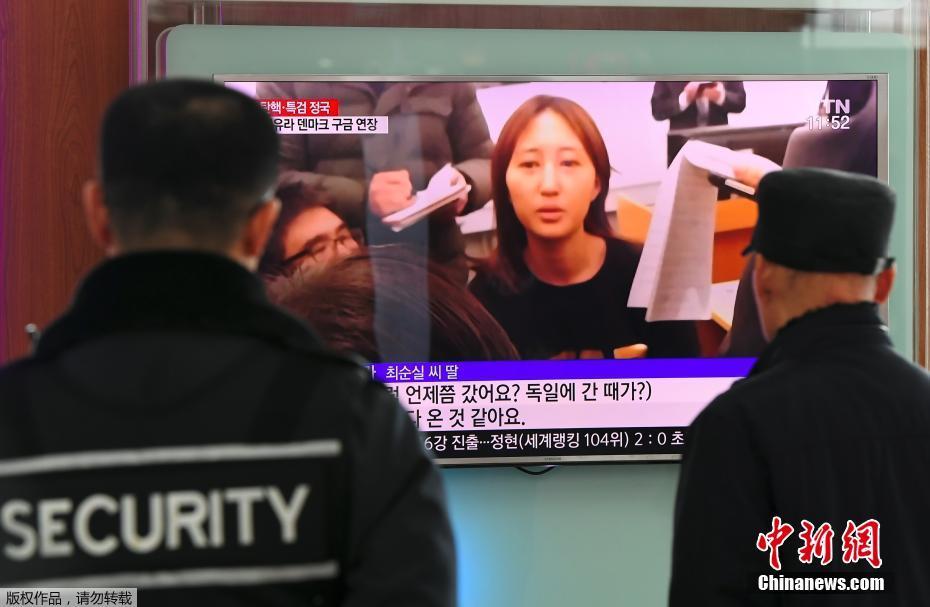 当地时间2017年1月3日,韩国首尔,民众观看电视报道。丹麦奥尔堡法院2日决定对郑某的监禁时间延长4周至30日。