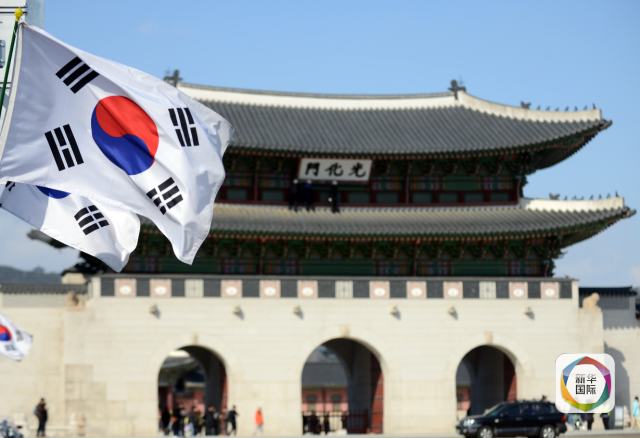 3月9日,在韩国首尔,韩国国旗在光化门城楼前飘扬。 新华社记者刘昀摄