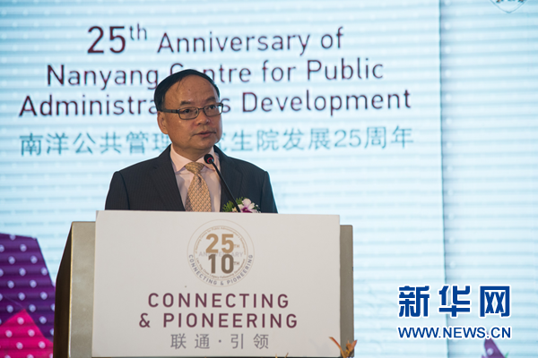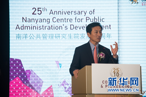 南洋公共管理研究生院院长刘宏教授致辞。新华网发 王应耀 摄