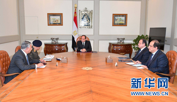 11月24日,在埃及首都开罗,埃及总统塞西(中)在袭击发生后召开全国反恐委员会紧急会议商讨对策。新华社发