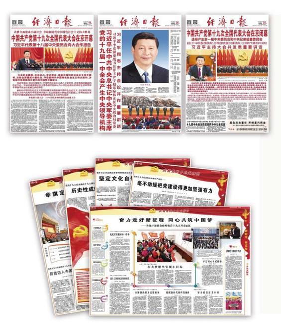1.精心组织、认真宣传好习近平新时代中国特色社会主义思想和党的十九大精神。我们深刻把握习近平新时代中国特色社会主义思想这一主线,在迎接十九大、宣传十九大、贯彻十九大三个阶段中,举全社之力深入开展“党中央治国理政新理念新思想新战略”“砥砺奋进的五年”“新时代新气象新作为”等主题宣传,做到了“有声有色有气势,出新出彩出精品”。会前推出的“中国经济十大看点”“六度观中国”等栏目设计精巧,角度独特,效果良好。会中推出了“迎接党的十九大特刊”50余期,精心打造特刊版面150个,见报稿件、图片约1500多篇(幅)。会后声势不衰、力度不减,权威解读大会精神,交流各地新鲜经验,实现了形式与效果的统一。