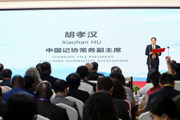 中国记协常务副主席胡孝汉主持论坛开幕式 冯振宇摄