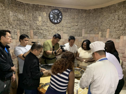中国员工和埃塞俄比亚员工一起包饺子庆祝中国春节