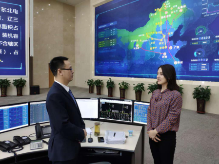 春节期间,骆喆到国网蒙东电力调度大厅采访