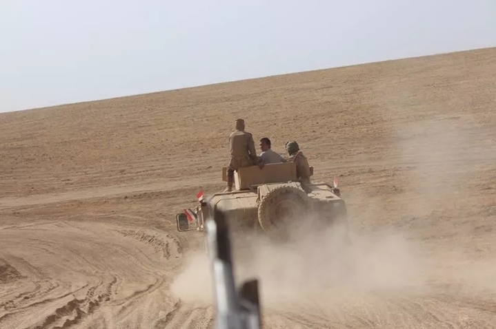 2016年11月,新华社记者在伊拉克摩苏尔市东南部前线采访。