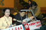 新华社十六大现场报道小组人员进行设备测试
