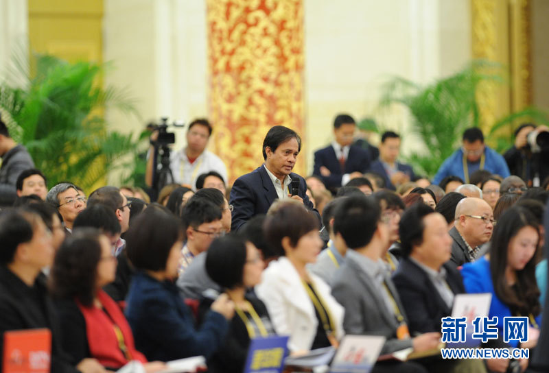 2012年11月7日16:30,中国共产党第十八次全国代表大会新闻发言人在人民大会堂三楼金色大厅举行新闻发布会。图为美国全国广播公司记者提问。新华网 陈竞超 摄