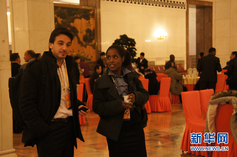 8日上午,来到人民大会堂报道十八大的外国记者。新华网记者 姚斯彦摄