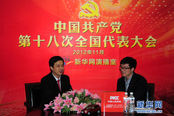 2012年11月10日,十八大代表、共青团贵州省委书记马宁宇作客新华网设在京西宾馆的十八大访谈间,接受新华网专访。新华网 李非 摄