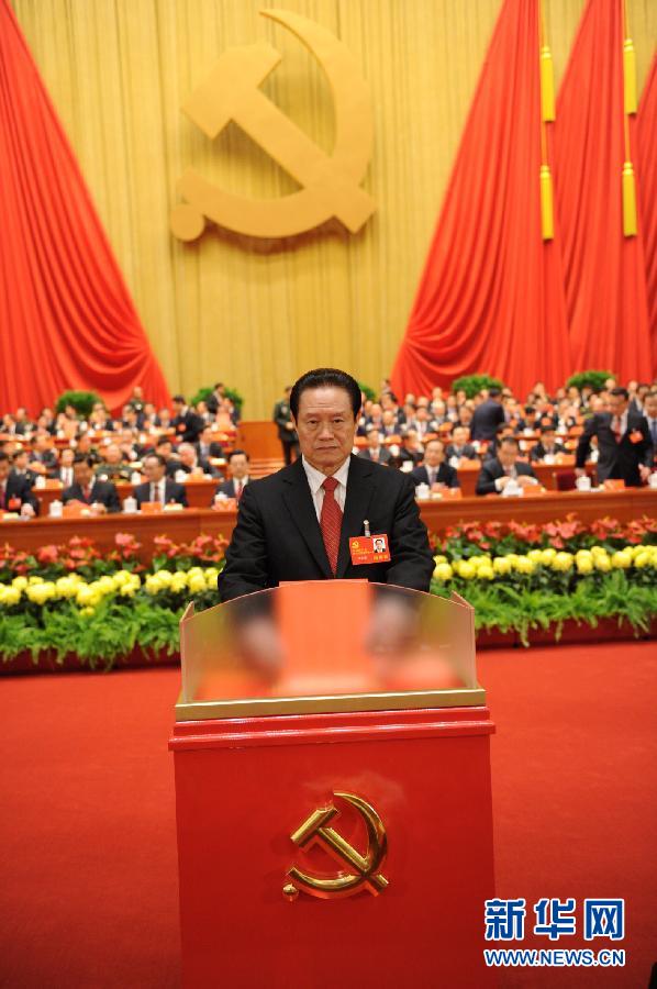 11月14日,中国共产党第十八次全国代表大会闭幕会在北京人民大会堂举行。代表投票选举中央委员会委员、候补委员和中央纪律检查委员会委员。这是周永康同志投票。新华社记者李学仁摄