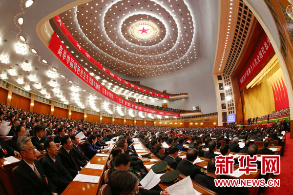 11月14日,中国共产党第十八次全国代表大会闭幕会在北京人民大会堂举行。 这是大会会场。 新华社记者李鑫摄