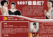 | 发展论坛07年度十大热门话题评选 | | 2007,是网络论坛异常热闹的一年。论坛中每一个话题,都记录下了我们国家和社会发展中经历过的最真实的印记,每一个话题也都是网友们最深切关注、最火热交流、最深刻思考的真实记录。 |