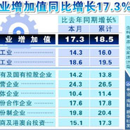 我国11月份工业增加值同比增长17.3%