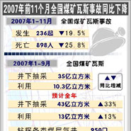 2007年前11个月全国煤矿瓦斯事故同比下降