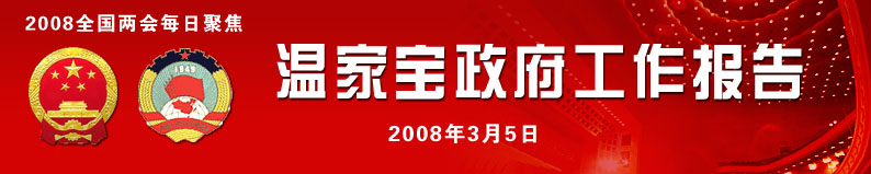 内容:第十一届全国人民代表大会第一次会议在人民大会堂开幕,听取国务院总理温家宝作政府工作报告。