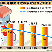 2003――2007年中央财政赤字数额及占GDP比重变化情况