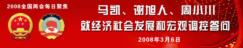 3月6日,十一届全国人大一次会议举行首场记者招待会,国家发展和改革委员会主任马凯、财政部部长谢旭人、中国人民银行行长周小川,就经济社会发展和宏观调控问题答记者问。