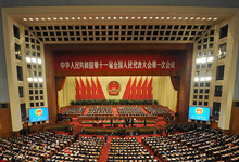 2008年3月8日下午3时,第十一届全国人民代表大会第一次会议第二次全体会议在人民大会堂举行,全国人大常委会委员长吴邦国作全国人民代表大会常务委员会工作报告。