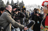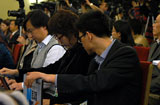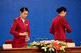 杨洁篪与姜恩柱在记者招待会结束后握手