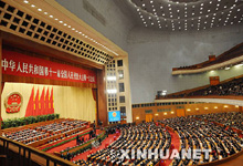 | | | | [新华网、中国政府网报道]今天上午9时,十一届全国人大一次会议将举行第五次全体会议,表决关于国务院机构改革方案的决定草案;选举十一届全国人大常委会委员长、副委员长、秘书长、委员,选举国家主席、副主席,选举国家中央军委主席。新华网、中国政府网对大会进行实时报道,敬请关注。 [ 2008-03-15 08:35:58 ] | | | | | | | | | [王兆国]各位代表,今天上午的全体会议应出席代表2987人,出席2966人,缺席21人,出席人数符合法定人数。现在开会。 [ 2008-03-15 09:00:59 ] | | | | | | | | | [王兆国]今天上午全体会议的议程是:表决关于国务院机构改革方案的决定草案。表决总监票人、监票人名单草案。选举第十一届全国人大常委会委员长、副委员长、秘书长,选举第十一届全国人大常委会委员。选举中华人民共和国主席、副主席,选举中华人民共和国中央军事委员会主席,共6项议程。 [ 2008-03-15 09:02:14 ] | | | | | | | | | [王兆国]现在进行第一项议程:表决《第十一届全国人民代表大会第一次会议关于国务院机构改革方案的决定(草案)》。这个决定草案主席团会议通过后,各代表团进行了审议。主席团会议根据各代表团的审议意见,决定将这个草案提请本次会议表决。现在由工作人员宣读决定草案。 [ 2008-03-15 09:03:01 ] | | | | | | | | | [工作人员]《第十一届全国人民代表大会第一次会议关于国务院机构改革方案的决定(草案)》。第十一届全国人民代表大会第一次会议听取了国务委员兼国务院秘书长华建敏关于国务院机构改革方案的说明,审议了国务院机构改革方案,决定批准这个方案。会议要求,国务院要加强领导,周密部署,保证机构改革方案的顺利实施。宣读完毕。 [ 2008-03-15 09:03:51 ] | | | | | | | | | [王兆国]现在对这个决定草案付表决,请按表决器。现在由工作人员宣读表决结果。 [ 2008-03-15 09:04:15 ] | | | | | | | | | [工作人员]赞成2744票,反对117票,弃权99票。 [ 2008-03-15 09:04:41 ] | | | | | | | | | [王兆国]通过。现在进行第二项议程:表决总监票人、监票人名单草案。监票人人选是由各代表团推选产生的,主席团在监票人人选中指定了两位总监票人人选,总监票人、监票人名单草案已经主席团会议通过,并印发各位代表。现提请本次会议表决。现在由工作人员宣读名单草案。 [ 2008-03-15 09:05:07 ] | | | | | | | | | [工作人员]《第十一届全国人民代表大会第一次会议总监票人、监票人名单(草案)》,共35人。 [ 2008-03-15 09:06:16 ] | | | | | | | | | [王兆国]这个名单草案合并表决,现在付表决,请按表决器。 [ 2008-03-15 09:07:06 ] | | | | | | | | | [工作人员]赞成2939票,反对14票,弃权9票。 [ 2008-03-15 09:07:44 ] | | | | | | | | | [王兆国]通过。 总监票人、监票人将对大会各项选举和决定任命事项的发票、投票、计票工作进行监督,大会秘书处对监票人进行了分组,现在由工作人员宣读监票人分组情况。 [ 2008-03-15 09:08:25 ] | | | | |