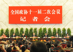 定于2009年3月6日15:00在人民大会堂新闻发布厅举行全国政协十一届二次会议记者会,主题是“为促进经济平稳较快发展建言献策”。厉以宁、李德水、陈锡文、王文彪、方方等五位委员将出席并回答记者的提问。