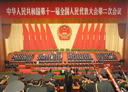 | | | | [新华网、中国政府网报道]3月9日9时,十一届全国人大二次会议在人民大会堂举行第二次全体会议,听取全国人大常委会委员长吴邦国作全国人大常委会工作报告。新华网、中国政府网进行文字、图片、视频实时报道,敬请关注! [ 2009-03-09 08:17:33 ] | | | | | | | | | [新华网、中国政府网报道]参加十一届全国人大二次会议第二次全体会议的代表们正陆续进入人民大会堂 ,报道本次大会的中外记者也正在通过安检进入大会堂。 [ 2009-03-09 08:41:40 ] | | | | | | | | | [新华网、中国政府网报道]大会堂铃声响起,工作人员提醒代表进入会场,大会即将开幕。 [ 2009-03-09 08:48:19 ] | | | | | | | | | [王兆国]各位代表,今天上午的全体会议应出席代表2985人,实到代表2868人,缺席117人,符合法定人数,现在开会。 [ 2009-03-09 08:58:46 ] | | | | | | | | | [王兆国]今天上午全体会议的议程是:听取全国人大常委会工作报告。现在请全国人大常委会委员长吴邦国同志作全国人大常委会工作报告。 [ 2009-03-09 08:59:03 ] | | | | | | | | | [全国人民代表大会常务委员会委员长 吴邦国]各位代表:我受全国人大常委会委托,向大会报告工作,请予审议。 [ 2009-03-09 08:59:29 ] | | | | | | | | | [吴邦国]过去一年的主要工作 [ 2009-03-09 08:59:52 ] | | | | | | | | | [吴邦国]2008年,面对重大困难和严峻挑战,以胡锦涛同志为总书记的党中央团结带领全国各族人民同心同德、顽强拼搏,全面夺取抗灾救灾斗争的伟大胜利,成功举办北京奥运会、残奥会,圆满完成神舟七号载人航天飞行任务,隆重纪念改革开放30周年,经济保持较快增长,民生得到进一步改善,社会大局保持稳定,国际地位进一步提高,中国特色社会主义事业取得了新的伟大成就。 [ 2009-03-09 09:00:06 ] | | | | | | | | | [吴邦国]过去的一年,是十一届全国人大常委会依法履职的第一年。我们全面贯彻党的十七大和十七届三中全会精神,以邓小平理论和“三个代表”重要思想为指导,深入贯彻落实科学发展观,坚持党的领导、人民当家作主、依法治国有机统一,紧紧围绕党和国家工作大局、紧紧抓住经济社会发展中的突出问题,依法履行职权,积极开展工作,充分发挥了国家权力机关的作用。 [ 2009-03-09 09:00:56 ] | | | | | | | | | [吴邦国]一年来,共审议15件法律案,通过9件,听取审议国务院、最高人民法院、最高人民检察院13个工作报告,作出3项决议,检查5部法律的实施情况,决定批准我国与外国缔结的条约、协定以及加入的国际公约20件,还决定和批准任免一批国家机关工作人员,为社会主义经济建设、政治建设、文化建设、社会建设作出了新的贡献。 [ 2009-03-09 09:01:21 ] | | | | | | | | | [吴邦国]一、全力支持抗震救灾和灾后恢复重建 [ 2009-03-09 09:01:38 ] | | | | | | | | | [吴邦国]去年5月12日发生的四川汶川特大地震,给灾区人民生命财产造成极大损失,也给国家经济社会发展带来严重影响。灾情牵动着全国各族人民的心。全国人大常委会紧急行动,认真落实中央部署,从人大工作自身特点出发,加强监督和立法工作,全力支持抗震救灾和灾后恢复重建,充分发挥了社会主义制度集中力量办大事的政治优势。 [ 2009-03-09 09:02:14 ] | | | | | | | | | [吴邦国]一是及时调整工作计划。 [ 2009-03-09 09:02:26 ] | | | | | | | | | [吴邦国]去年5月22日,专门召开委员长会议,专题听取国务院汇报,为突出工作重点,支持国务院集中精力抓好抗震救灾工作,决定调整常委会工作计划,将听取审议国务院关于抗震救灾和灾后恢复重建工作报告,以及2008年中央预算调整方案列入6月份常委会会议议程;决定将按惯例在6月份会议审议的中央决算和审计工作报告、审查批准2007年中央决算等议程调整到8月份的会议。 [ 2009-03-09 09:03:01 ] | | | | | | | | | [吴邦国]为有充分时间把这次抗震救灾、过渡性安置和灾后恢复重建积累的有益经验吸收到相关法律中,决定将原计划6月份会议审议的防震减灾法修订草案调整到10月份的会议审议。 [ 2009-03-09 09:03:18 ] | | | | | | | | | [吴邦国]二是坚决落实党中央关于集中财力投入抗震救灾的决策。为确保抗震救灾和灾后恢复重建资金需要,5月22日委员长会议明确,要以保障灾区人民生活为根本,一切从抗震救灾实际情况出发,根据特事特办的原则,建议从中央预算稳定调节基金中调用大部分,建立灾后恢复重建基金,按照基金实际使用情况列入和调整中央预算,依法报全国人大常委会审查批准;在预算调整方案批准之前,所需资金可先从中央国库库款中调拨,以确保抗震救灾和灾后恢复重建资金及时拨付到位。 [ 2009-03-09 09:03:45 ] | | | | |