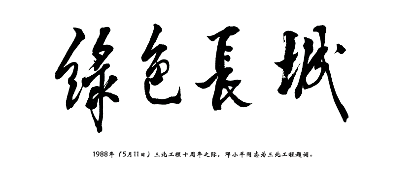 1989年,改革开放总设计师邓小平为三北工程题下四个大字:绿色长城。