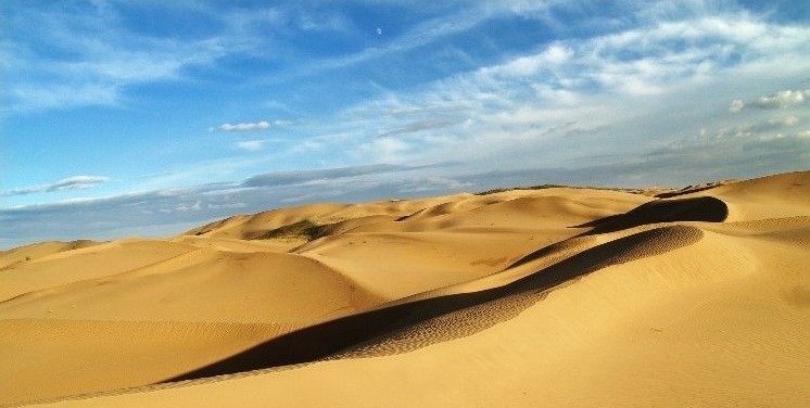毛乌素沙漠位于内蒙古自治区。在伊克昭盟南部,陕西省长城一线以北,面积约4.22万平方公里。降水较多(250∼400毫米),有利植物生长,原是畜牧业比较发达地区,固定和半固定沙丘的面积较大