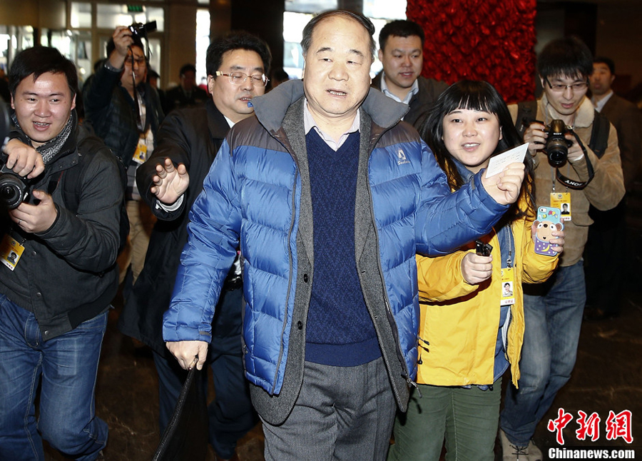 3月1日,新任全国政协委员、诺贝尔文学奖得主莫言现身政协驻地酒店,面对众多记者追问,他只说了一句“辛苦了!”