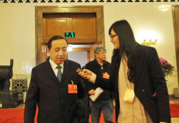 3月2日,政协第十二届全国委员会第一次会议预备会议举行。图为全国政协委员、人力资源和社会保障部副部长杨志明接受新华网、中国政府网记者采访。宋君毅 摄