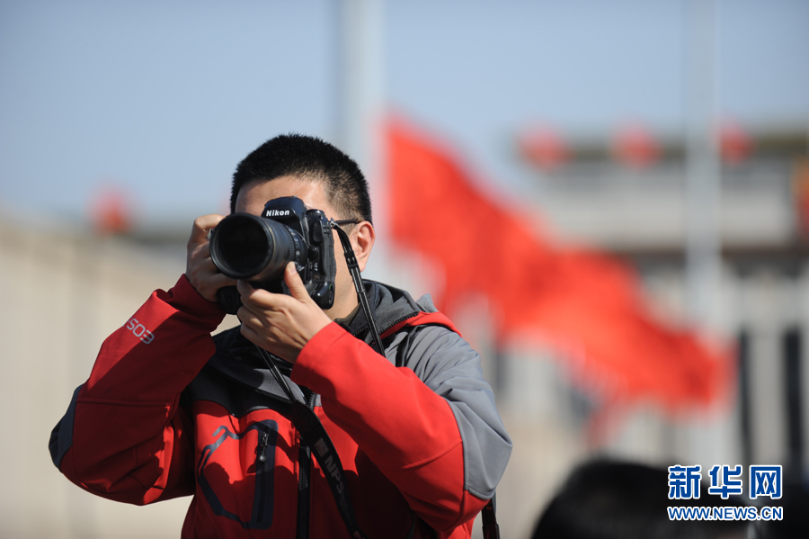 2013年3月3日下午3时,全国政协十二届一次会议在人民大会堂举行开幕会,听取政协全国委员会常务委员会工作报告,听取政协全国委员会常务委员会关于提案工作情况的报告。图为采访“两会”的摄影记者。新华网/中国政府网 陈竞超 摄