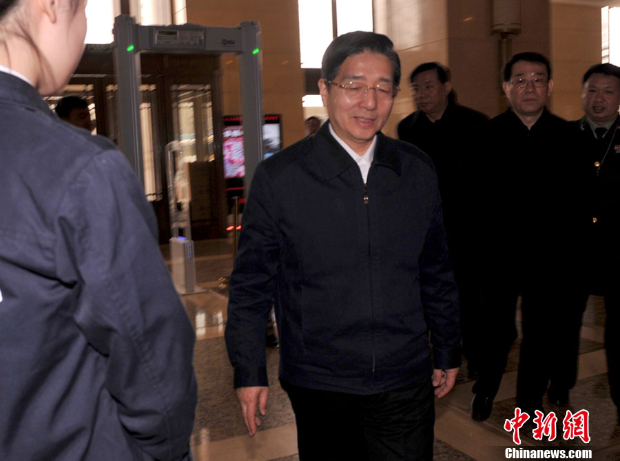 3月2日,中国公安部部长郭声琨到十二届全国人大一次会议代表驻地检查安全保卫工作。中新社发 贾国荣 摄