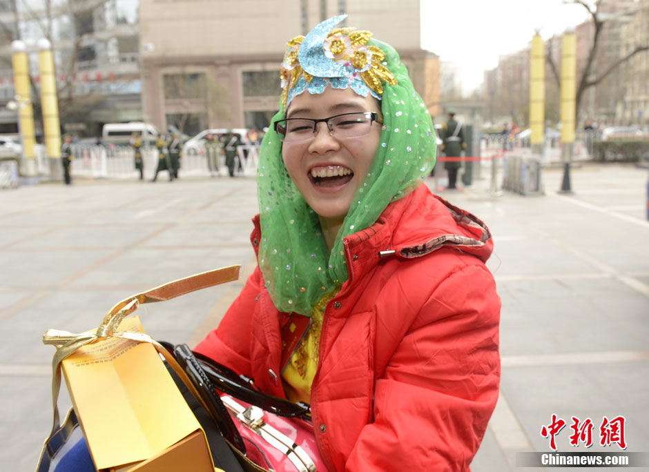 3月2日,“90后”全国人大代表铁飞燕随全国人大云南代表团抵达驻地,很开心地接受了记者的采访。铁飞燕出生于1992年8月,2010年5月4日随父亲一起到绵阳旅游时,飞身跳河勇救4名落水工人。中新社发 侯宇 摄