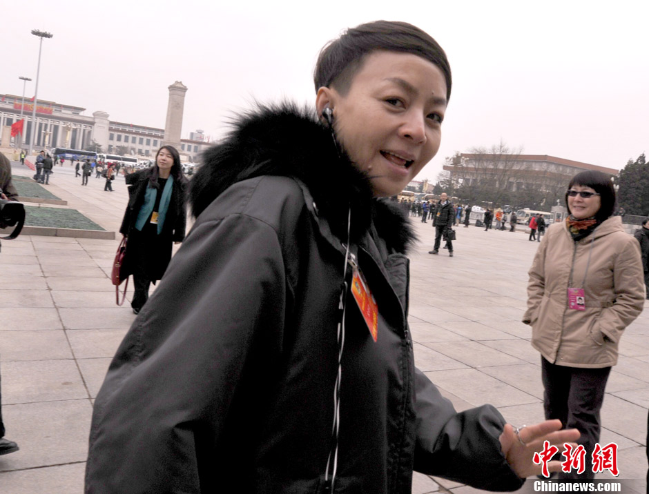 3月2日,全国政协委员宋丹丹在北京参加全国政协十二届一次会议预备会。 中新社发 贾国荣 摄