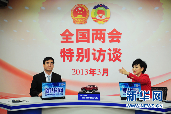 2013年3月3日,全国人大代表、江苏省连云港市市长杨省世做客新华网两会访谈,与网友谈城市创新。新华网 李欣 摄