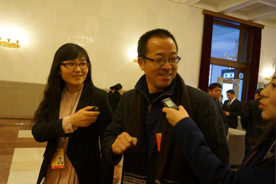 2013年3月3日下午3时,全国政协十二届一次会议在人民大会堂举行开幕会,听取政协全国委员会常务委员会工作报告,听取政协全国委员会常务委员会关于提案工作情况的报告。图为全国政协委员俞敏洪接受新华网、中国政府网记者采访。林振芬 摄