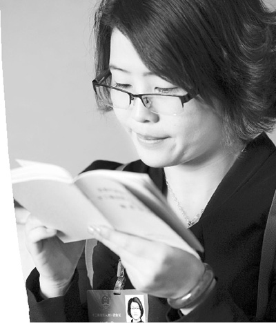 被称为“最美90后”的全国人大代表铁飞燕在驻地房间阅读代表手册。