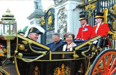 2007年6月12日,傅莹向英国女王伊丽莎白二世递交国书后,乘坐传统的英国王室马车离开白金汉宫。新华社发