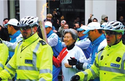 2008年4月6日,英国伦敦,傅莹传递奥运火炬。图/东方IC