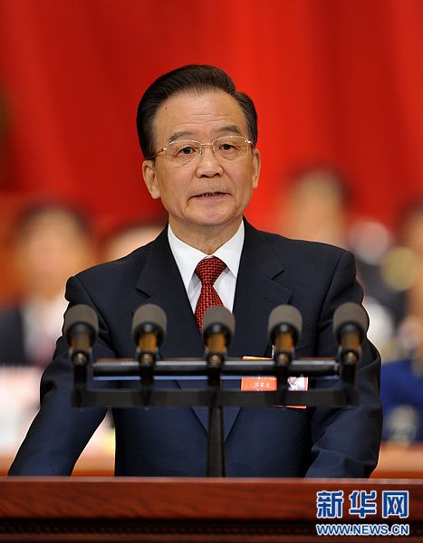 3月5日,第十二届全国人民代表大会第一次会议在北京人民大会堂开幕。国务院总理温家宝作政府工作报告。 新华社记者 黄敬文 摄