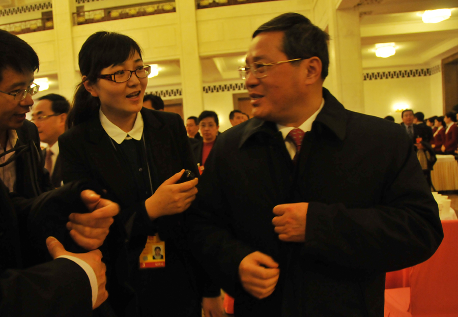3月5日(星期二)上午9时,第十二届全国人民代表大会第一次会议在人民大会堂开幕,听取国务院总理温家宝作政府工作报告,审查计划报告和预算报告。图为全国人大代表、浙江省长李强接受新华网、中国政府网记者专访。 宋君毅 摄