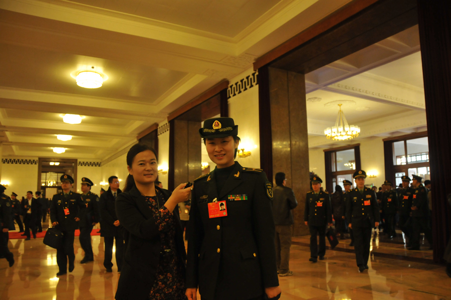 3月5日(星期二)上午9时,第十二届全国人民代表大会第一次会议在人民大会堂开幕,听取国务院总理温家宝作政府工作报告,审查计划报告和预算报告。图为全国人大代表、女航天员刘洋接受新华网、中国政府网记者专访。 宋君毅 摄