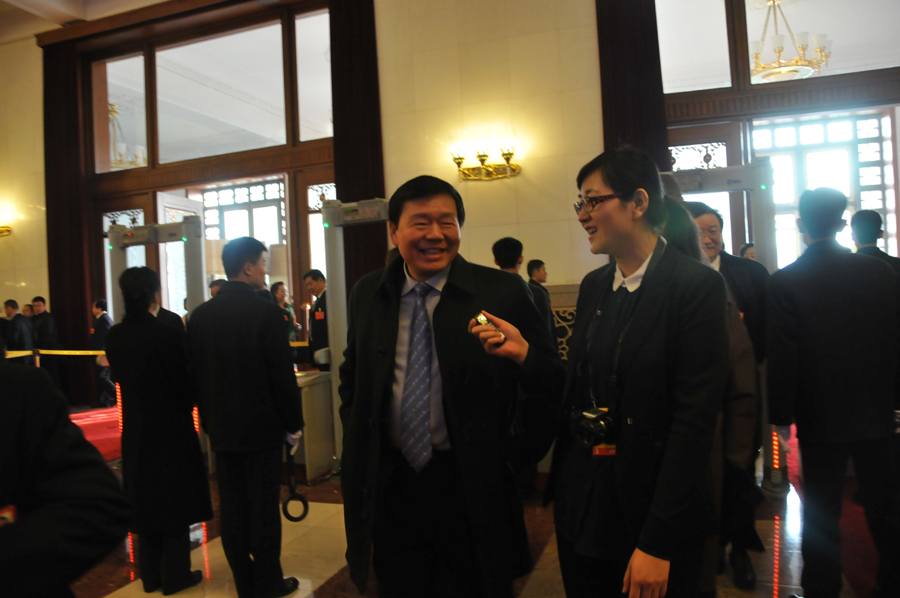 3月5日(星期二)上午9时,第十二届全国人民代表大会第一次会议在人民大会堂开幕,听取国务院总理温家宝作政府工作报告,审查计划报告和预算报告。图为全国人大代表、陕西省长娄勤俭接受新华网、中国政府网记者专访。 宋君毅 摄