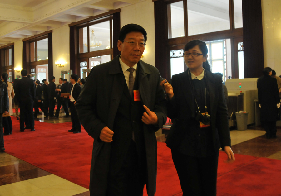 3月5日(星期二)上午9时,第十二届全国人民代表大会第一次会议在人民大会堂开幕,听取国务院总理温家宝作政府工作报告,审查计划报告和预算报告。图为全国人大代表、湖南省长徐守盛接受新华网、中国政府网记者专访。 宋君毅 摄