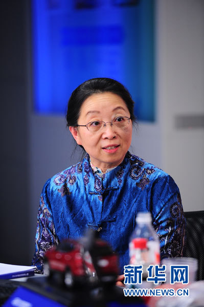 2013年3月6日, 全国政协委员、仁创科技集团的董事长秦升益, 中关村海淀园管委会副主任张秀英做客新华网两会访谈,与网友谈创新与环保。新华网 李欣 摄