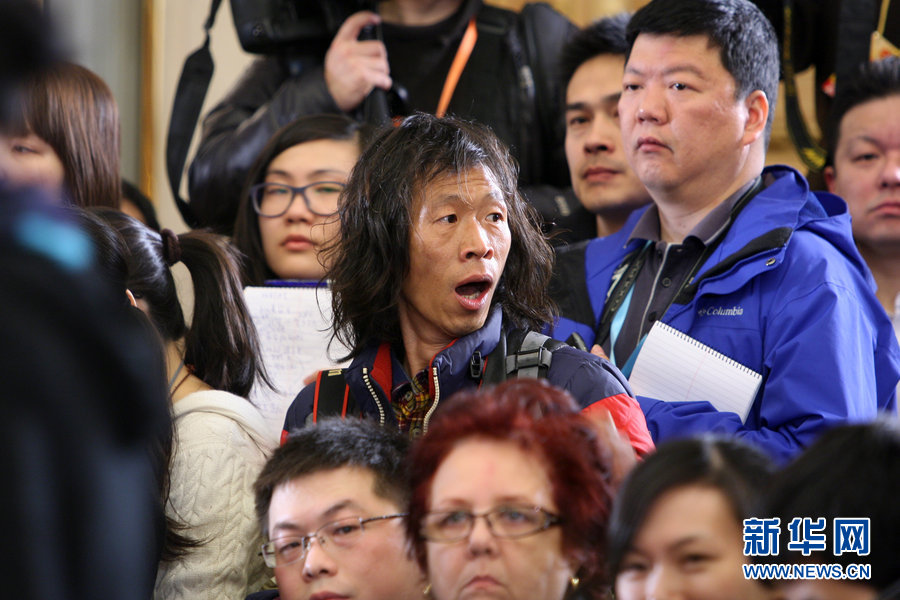 2013年03月04日,北京,十二届全国人大一次会议在人民大会堂一楼新闻发布厅举行新闻发布会。会上,有位记者打扮“犀利”,引人注目。