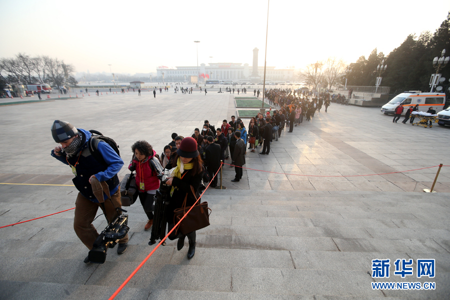 2013年3月5日,北京,人民大会堂东门排队的记者们。