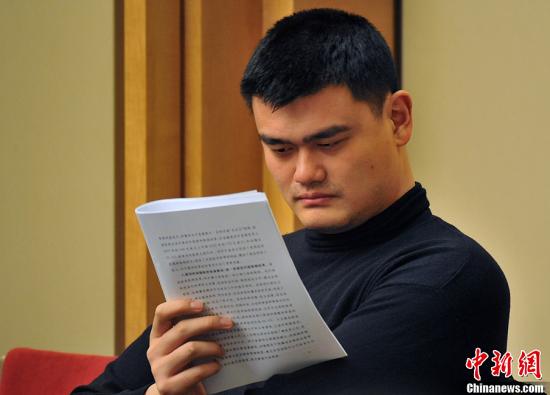 3月5日上午,第十二届全国人民代表大会第一次会议在北京人民大会堂开幕。新任全国政协委员姚明听取温家宝作政府工作报告。中新社发 贾国荣 摄