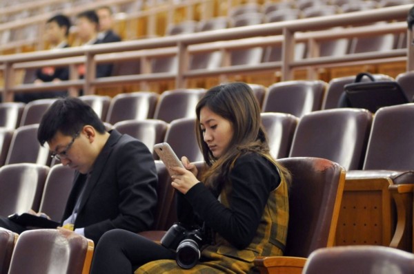 3月7日,北京,两会上的女记者。