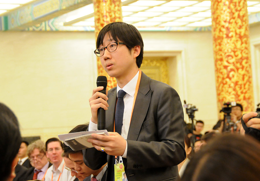 3月9日,十二届全国人大一次会议举行记者会,外交部部长杨洁篪就“中国的外交政策和对外关系”答中外记者问。这是韩联社记者提问。新华网/中国政府网 翟子赫 摄